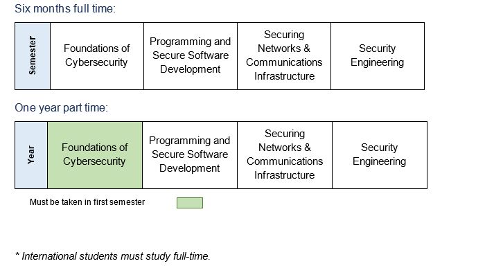 Full time: 6 months (1 semesters) Part time: 12 months (2 semesters) |