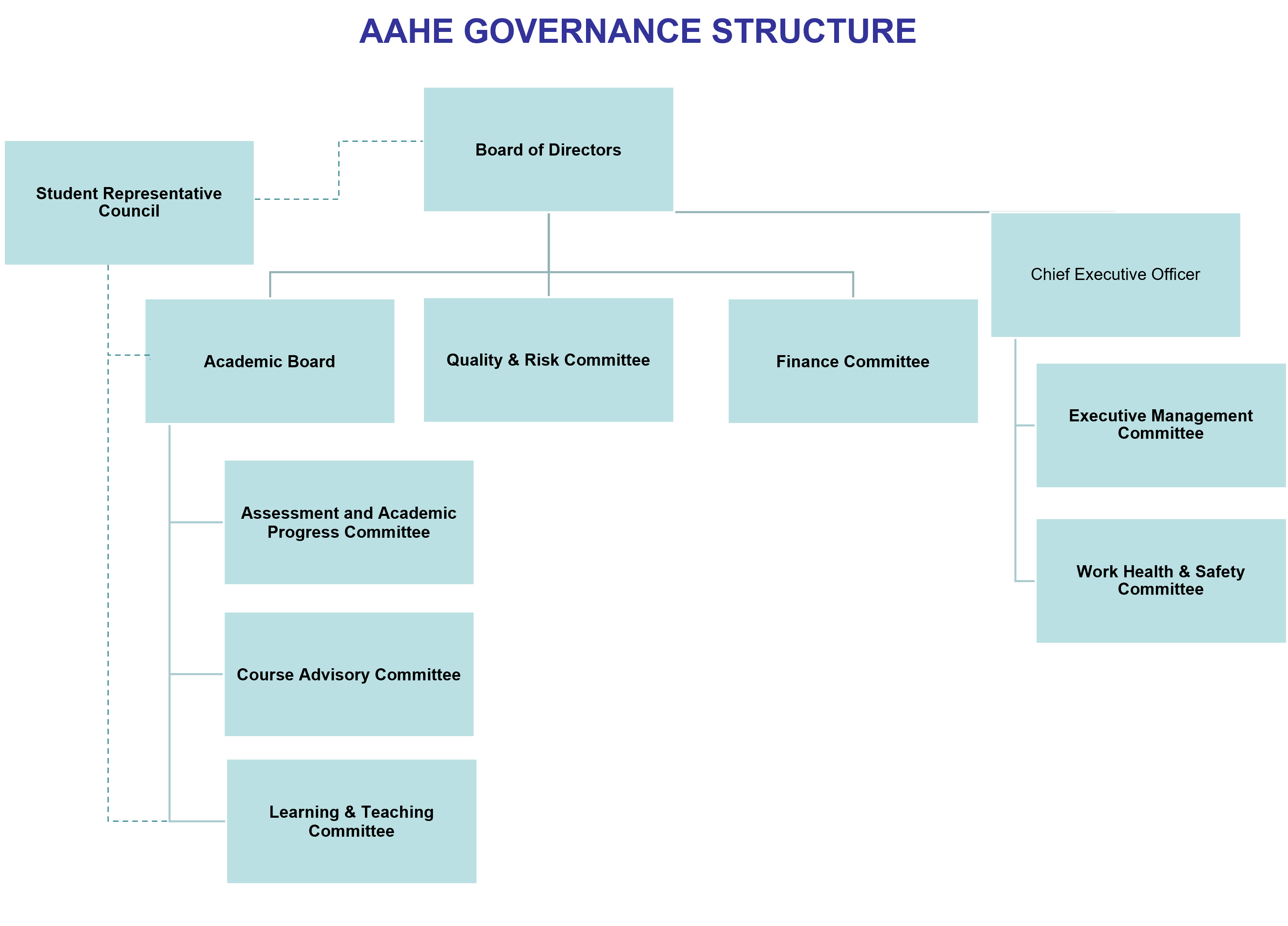 The Australasian Academy of Higher Education is a proprietary limited company established under the Corporations Act 2001 with a Board of Directors that includes external members, along with a representative of the shareholders of the Company. The independence of the Board of Directors provides a mechanism to separate the ownership and governance of the Company from the management of AAHE and to provide independent business, financial and higher education advice at the highest level of decision-making. One of the external directors chairs the Board of Directors. The Board of Directors sets AAHE’s mission and strategic goals in addition to ensuring the Academy meets its legal, regulatory, financial and social obligations and responsibilities.